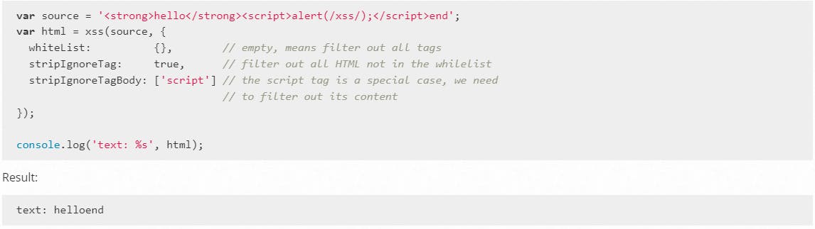 This JS module is dedicated to sanitizing suspicious HTML by filtering user input and eliminating the possibility of XSS attacks. The module helps control the usage of tags and their attributes following the predefined whitelist of allowed items. You can extend the module by adding custom rules or modifying the default behavior to suit the specific requirements of your app. For instance, you can customize the XSS filter or add custom whitelist rules.