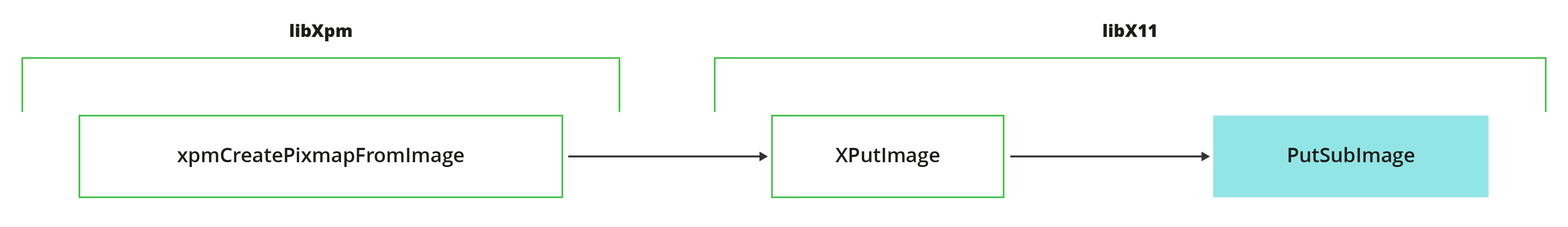 The xpmCreatePixmapFromImage libXpm function calls for this XPutImage function: